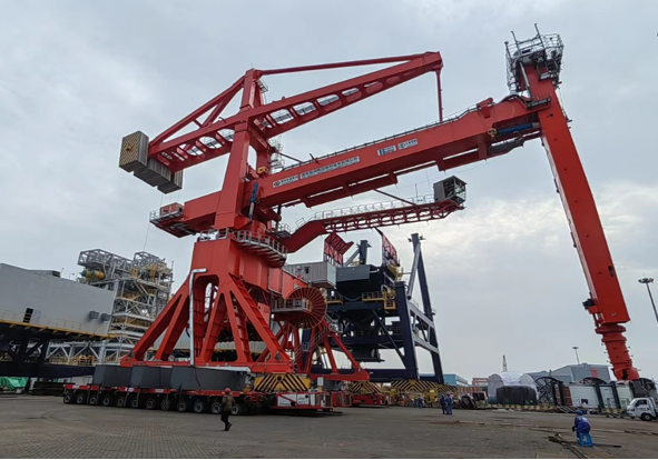 為不影響業主碼頭的正常生產,自11月16日從華新機電張家港碼頭總裝場地開始,在項目組的科學統籌謀劃下,工作人員加班加點,克服了大雨、夜間作業的困難,鼓足干勁,經過四天三夜連續工作后,將該臺螺旋卸船機安全地運至業主碼頭并成功吊裝就位,后續將在短暫的現場調試后開始投入試運行。