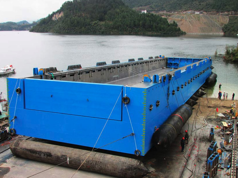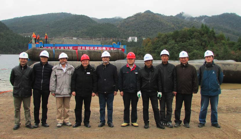 構(gòu)皮灘一級(jí)升船機(jī)承船廂構(gòu)皮灘通航工程是當(dāng)今世界通航水頭最高、單級(jí)提升高度最大、主提升設(shè)備規(guī)模最大的通航建筑物。為此公司董事長(zhǎng)徐學(xué)明親自掛帥,在公司領(lǐng)導(dǎo)和相關(guān)部門的大力支持下,克服了現(xiàn)場(chǎng)施工的種種困難,加班加點(diǎn)按原定計(jì)劃完成結(jié)構(gòu)制作;項(xiàng)目部根據(jù)現(xiàn)場(chǎng)有限的條件精心組織、科學(xué)決策,克服烏江流域內(nèi)沒有專用拖帶船、在沒有可供借鑒的案例情況下,編制了詳盡的氣囊下水方案、船廂拖帶方案、各工況下的安全評(píng)估報(bào)告和應(yīng)急預(yù)案, 從而保證了承船廂平穩(wěn)入水、安全進(jìn)入船廂室。