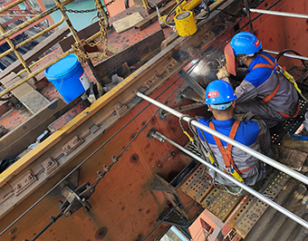 面對工期緊張、來船靠泊、連續(xù)降雨等不利因素,項(xiàng)目團(tuán)隊(duì)第一時間和業(yè)主溝通準(zhǔn)備入場資料,連夜組織協(xié)調(diào)施工人員趕赴現(xiàn)場,迅速制定施工“作戰(zhàn)圖”,打通施工通道,組織平行作業(yè),盡全力保證各項(xiàng)工作有序開展,最終提前半天完成3號卸船機(jī)大臂鉸接點(diǎn)軸承及主小車滑輪組更換工作。