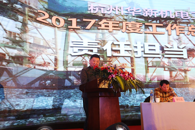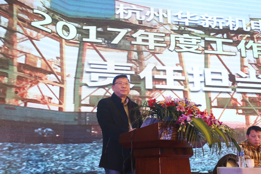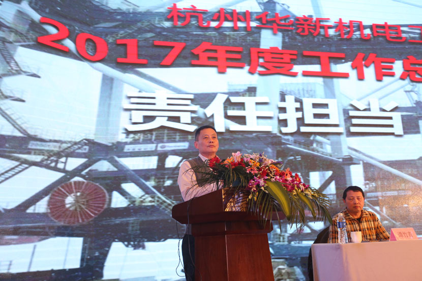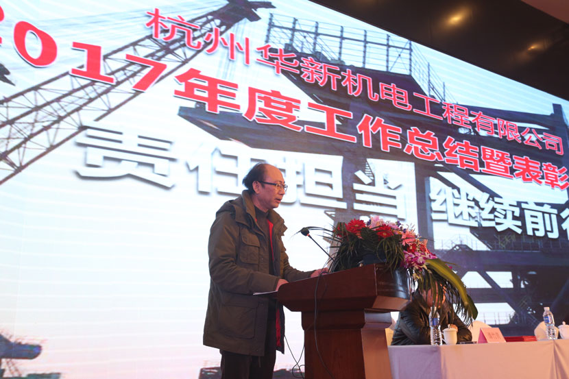 2018年2月9日,華新機電與華新科技全體員工以及無錫國電和海重重工的代表齊聚一堂,隆重地召開了2017年度的工作總結(jié)暨表彰大會。天橋起重董事長肖建平,前董事長成固平、副總經(jīng)理范洪泉和黨委副書記/工會主席譚竹青出席了大會。公司總經(jīng)理劉建勝及各子公司代表分別向大會作了2017年度工作匯報,并對優(yōu)秀的員工進(jìn)行了表彰。