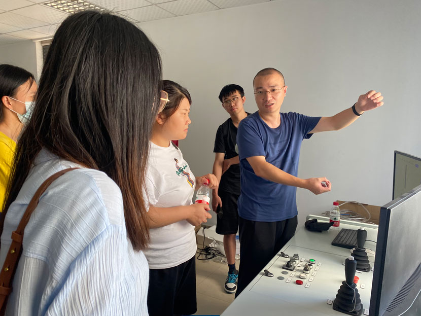 參觀特檢院展館,認真聆聽講解員介紹起重機行業歷史,操作館內模型。