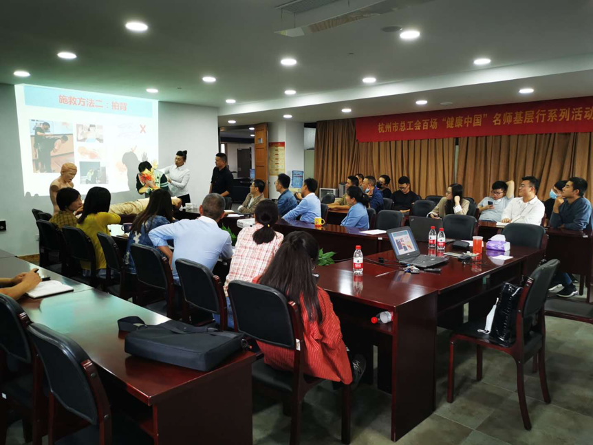 正值十月黃金周來臨之際,為普及急救常識,進一步提高員工的安全救護意識和應急處理能力,增強應對突發情況和意外傷害的自救、互救能力,9月24日下午,杭州市總工會2020年在全市范圍內開展的百場《健康中國》名師基層行送健康系列活動走進華新機電。
