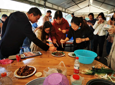 不一會兒,在團隊協作下,燒烤和大鍋菜的香味陣陣撲鼻而來,你一塊我一塊,大家的午餐就這樣開始。大快朵頤之后,無論是新來的小伙伴還是老員工,已經打成一片,同事間的情誼在歡聲笑語和縷縷炊煙中逐漸升華。