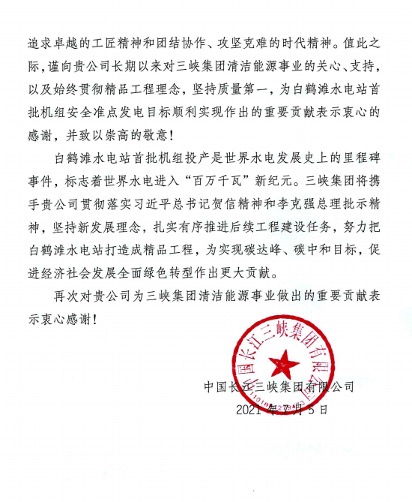 隨著各個工程項目階段性的驗收和竣工,近幾個月來,華新機(jī)電陸續(xù)收到了來自西藏能源、三峽集團(tuán)、中核總、印尼、非洲等公司發(fā)來的感謝信和表揚(yáng)信。對于客戶的充分肯定和高度認(rèn)可,公司倍感欣慰,也為能參與這些重大項目的工程建設(shè)深感自豪。烏東德、白鶴灘水電站橋機(jī),“華龍一號”福清核電站橋機(jī)、西藏DG水電站橋機(jī)、印尼芝拉扎卸船機(jī)裝船機(jī)、非洲幾內(nèi)亞裝船機(jī)等,都無一不滲透著華新機(jī)電人的智慧和留下了的辛勤汗水。