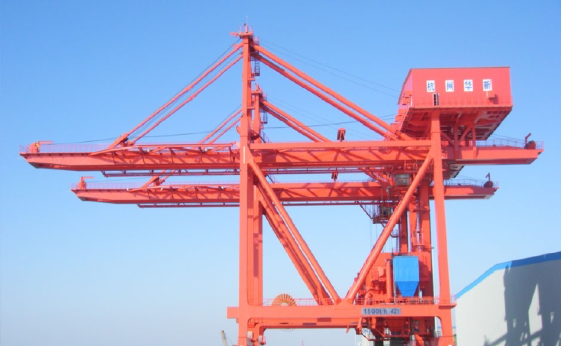 公司于1990年成功研發公司首臺臺四卷筒牽引式卸船機試驗機,在上海吳涇熱電廠投入使用,1993年1臺600t/h機房下置的四卷筒牽引式卸船機在華能威海電廠投入使用,至今已運行近30年,設備情況良好。經過不斷地發展,不斷地積累經驗,不斷地研發創新,華新機電生產制造的卸船機技術在不斷地升級,產品系列從200t/h~2400 t/h,目前生產制造過的生產率最大卸船機為馬來西來亞TJB2400t/h項目,具備設計制造2500~3500t/h卸船機的能力。產品廣泛應用于電力、冶金、建材、港口、散貨碼頭等行業,在“一帶一路”的偉大創舉下,產品陸續出口印尼、馬來、菲律賓、新加坡、越南等東南亞國家以及西亞、中東、南美、非洲等地區,產品遍及國內外。