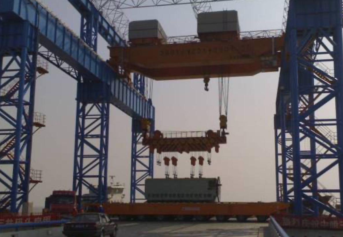 公司設(shè)計(jì)制造的所有橋機(jī)及門(mén)機(jī)的起升小車系消化吸收國(guó)外先進(jìn)技術(shù),結(jié)合我國(guó)當(dāng)時(shí)的配套水平,綜合研究院多年的技術(shù)研制經(jīng)驗(yàn),遵照GB/T3811-2008《起重機(jī)設(shè)計(jì)規(guī)范》、GB/T14405-2011《通用橋式起重機(jī)》等標(biāo)準(zhǔn),同時(shí)參照國(guó)外有關(guān)起重機(jī)標(biāo)準(zhǔn)及歐洲搬運(yùn)協(xié)會(huì)主流橋式起重機(jī)機(jī)型研制而成,節(jié)能減排,經(jīng)濟(jì)環(huán)保,特別適合地下廠房、新型工廠及大噸位貴重物件的吊裝、搬運(yùn)就位工作。公司首臺(tái)臺(tái)橋機(jī)為1990年研發(fā)、1992年投入生產(chǎn)的寧波北侖電廠80/20t橋式起重機(jī),公司首臺(tái)臺(tái)門(mén)機(jī)為1994年向富春江發(fā)電廠提供的2×20t尾水門(mén)機(jī)。近三十年的發(fā)展,已向國(guó)內(nèi)外眾多優(yōu)質(zhì)客戶提供千余臺(tái)橋機(jī)和門(mén)機(jī)設(shè)備,是目前業(yè)內(nèi)最先進(jìn)、最成熟的低凈空小車結(jié)構(gòu)。目前制造過(guò)的單小車橋機(jī)最大額定起重量為800t,雙小車橋機(jī)最大額定起重量為500t+500t,具備1500噸橋機(jī)的設(shè)計(jì)制造能力;制造過(guò)的門(mén)式起重機(jī)最大額定起重量為900t的造船龍門(mén)吊。